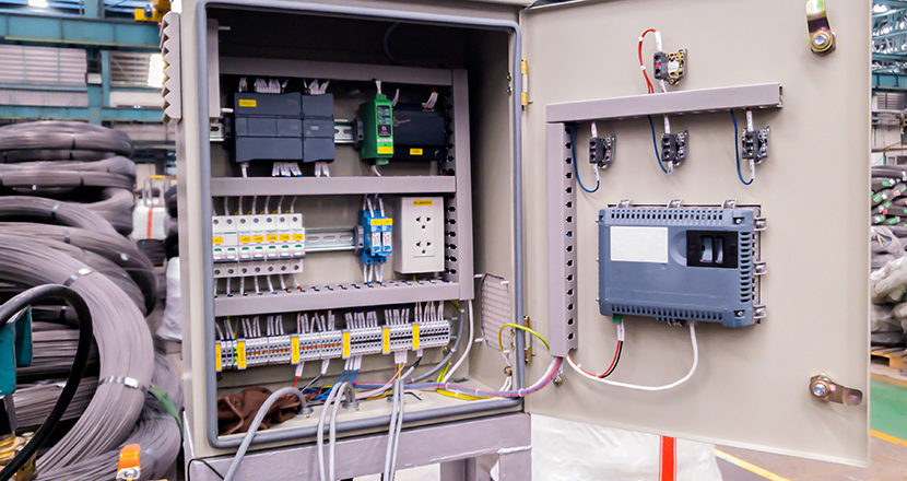 盤制作 制御盤制作 機械や生産ラインを精密に操作する制御盤 制御盤は機械や生産ライン、照明などを制御・操作するための各種電気制御機器を納めた盤です。 前面にはメーター、スイッチ、タッチパネル等が取り付けられており、様々な動きをボタンや遠方信号発停により操作出来ます。