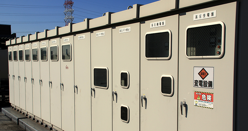 盤制作 配電盤制作 高圧・低圧配電盤で支える安定した電力 配電盤は発電所から需要家設備までの電気経路の各所に設置され、受配電、変圧、電力利用の効率化、事故の保護・監視・制御などの機能を持ちます。 高圧・低圧配電盤は設備内の各種電気機器(モーターを使ったポンプや空調機などの電動機及び照明・コンセントなど)に電気を供給します。